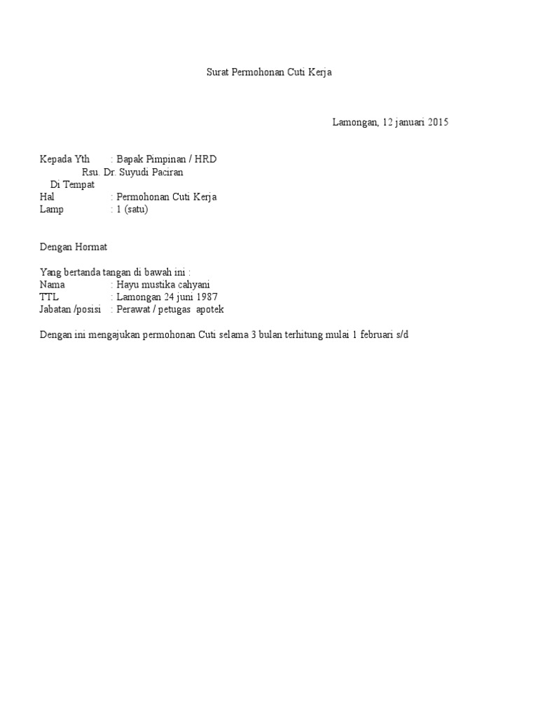 Contoh Surat Rasmi Mohon Cuti Kerja Tanpa Gaji Surat Rr – Cute766